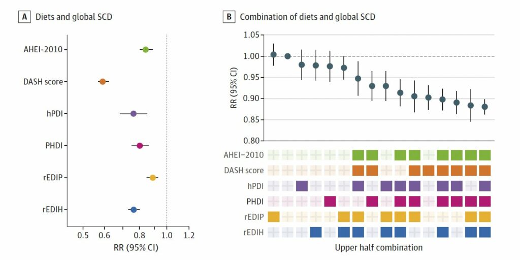 • 6 wzorców diety: AHEI-2010, DASH, hPDI, PHDI, rEDIH, rEDIP — wszystkie w korzystnym kierunku dla SCD