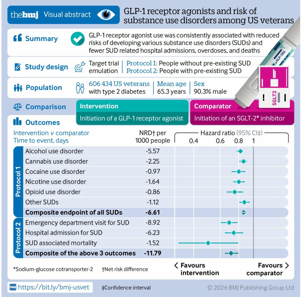 W badaniu na ponad 600 tysiącach uczestników wykazano, że analogi GLP-1 wiążą się ze zmniejszonym ryzykiem uzależnienia od alkoholu, opioidów, kokainy, marihuany i nikotyny, a także z o 50 proc. niższą liczbą zgonów związanych z użyciem tych substancji.