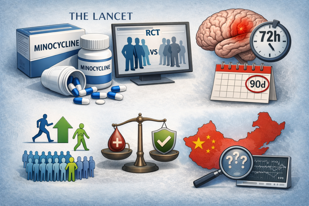 Po latach rozczarowań w neuroprotekcji: minocyklina dołączona do standardu w 72 h po udarze niedokrwiennym mózgu zwiększyła szansę świetnego powrotu funkcjonalnego po 90 dniach – bez czerwonych flag bezpieczeństwa (to wygląda na leczenie wspomagające do potwierdzenia, nie na nowy standard od jutra).