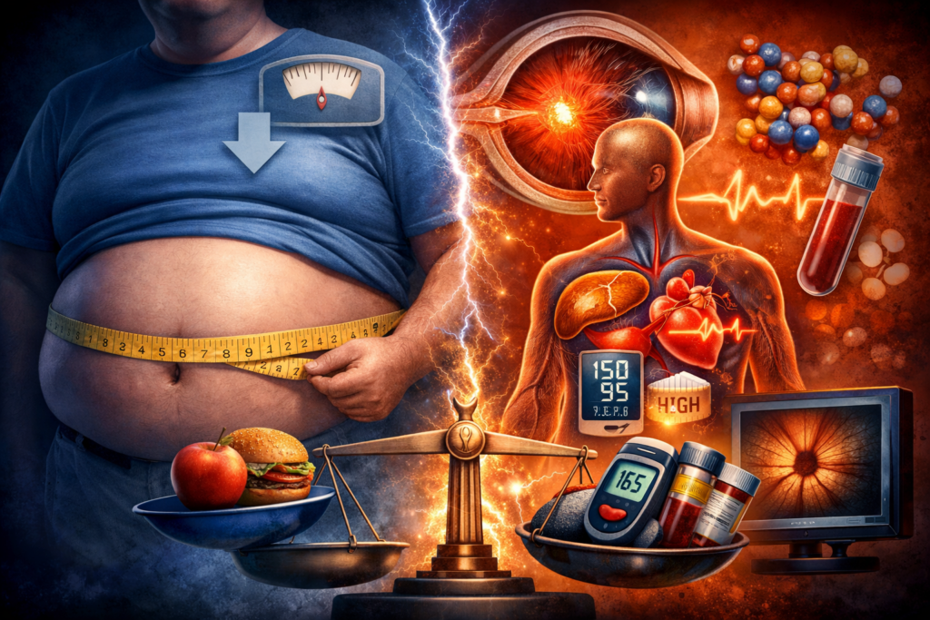 Nowa analiza przekrojowa z programu NIH All of Us (156 tys. osób ≥40 r.ż.) sprawdziła związek otyłości i zespołu metabolicznego z rozpoznaniem jaskry w EHR. Jaskrę miało 5,53% badanych. Zespół metaboliczny wiązał się z ~35% wyższymi szansami jaskry (a „nasilenie” MetS: +19% na każdy 1 punkt), podczas gdy nadwaga/otyłość oraz większy obwód talii wychodziły paradoksalnie jako niższe szanse jaskry. To nie dowód przyczynowości (przekrojówka + kody z dokumentacji), ale mocny sygnał, że profil metaboliczny może lepiej wyłapywać osoby do czujniejszego screeningu okulistycznego niż sama masa ciała.